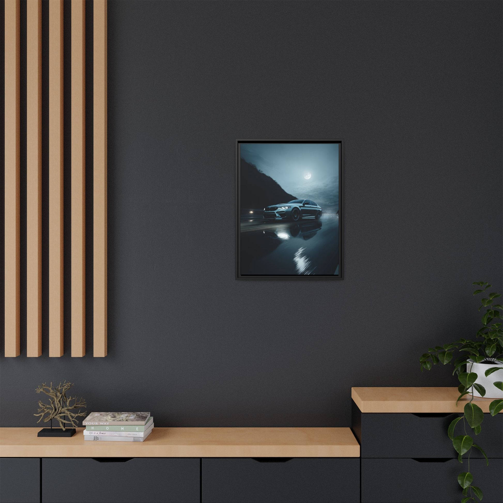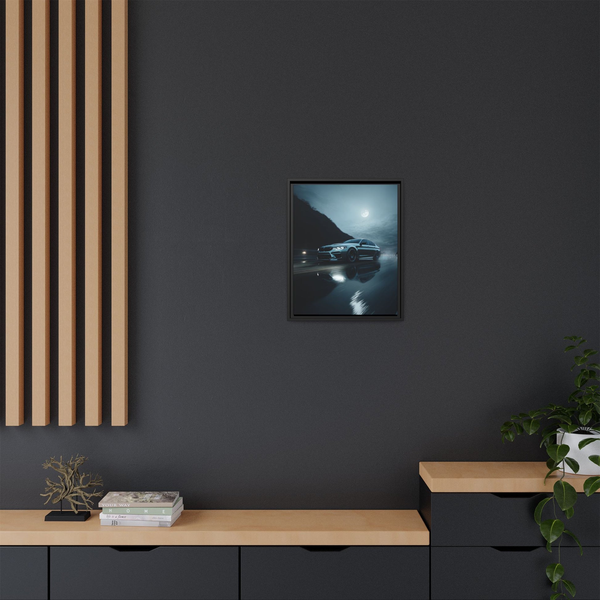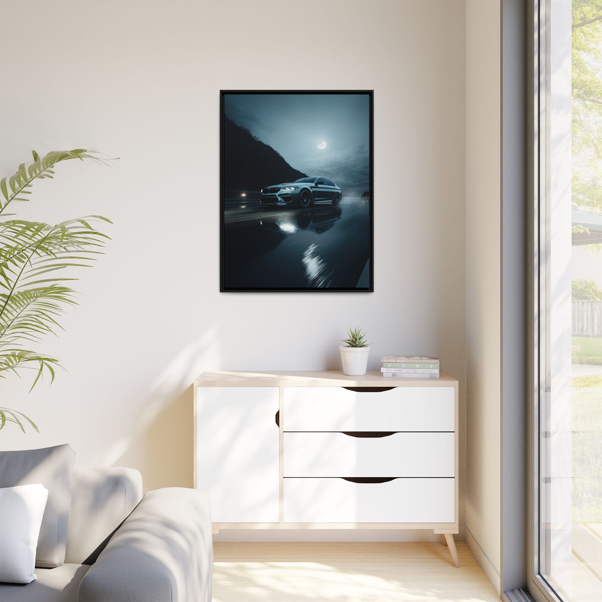 A sleek matte canvas capturing the BMW M5 Competition in its refined yet aggressively engineered form. Precise rim-lighting carves out the wide stance, sharp character lines, and performance-focused contours, creating a cinematic silhouette that blends executive luxury with M-powered precision in a glare-free, museum-grade finish.