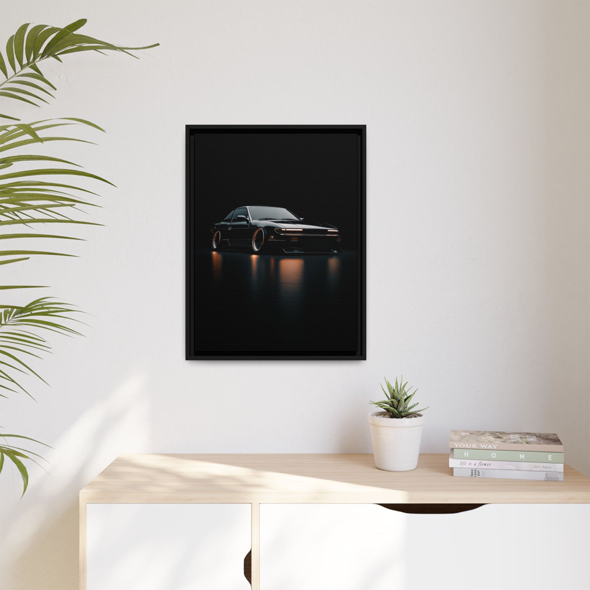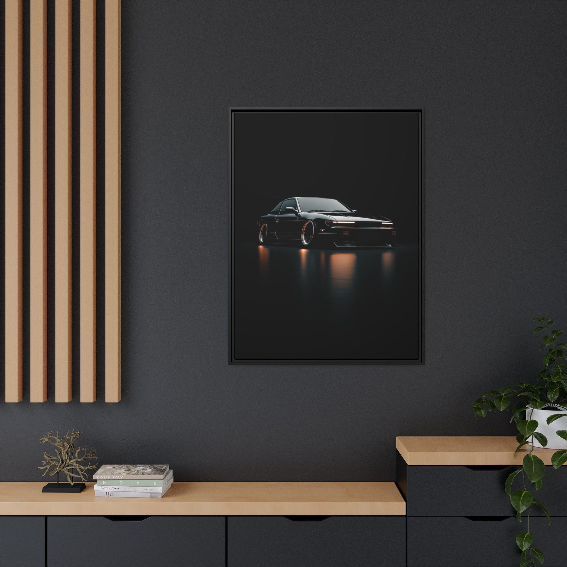 A cinematic matte canvas capturing the timeless JDM spirit of the Nissan 240SX S13. Soft amber rim-lighting outlines its signature pop-up headlights, drift-inspired silhouette, and clean coupe profile—creating a refined, high-contrast artwork with a nostalgic edge. Printed on museum-grade matte canvas using Greenguard Gold–certified inks, this piece blends retro Japanese style with minimalist luxury, making it perfect for garages, studios, offices, and modern interiors.