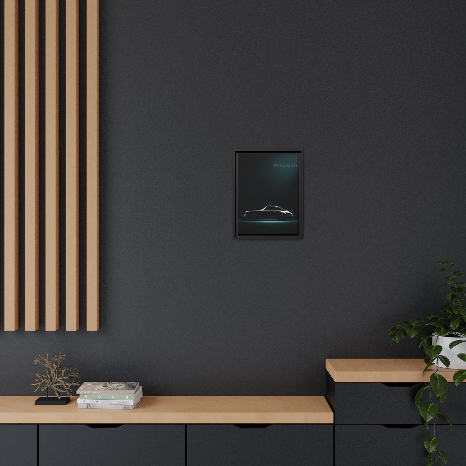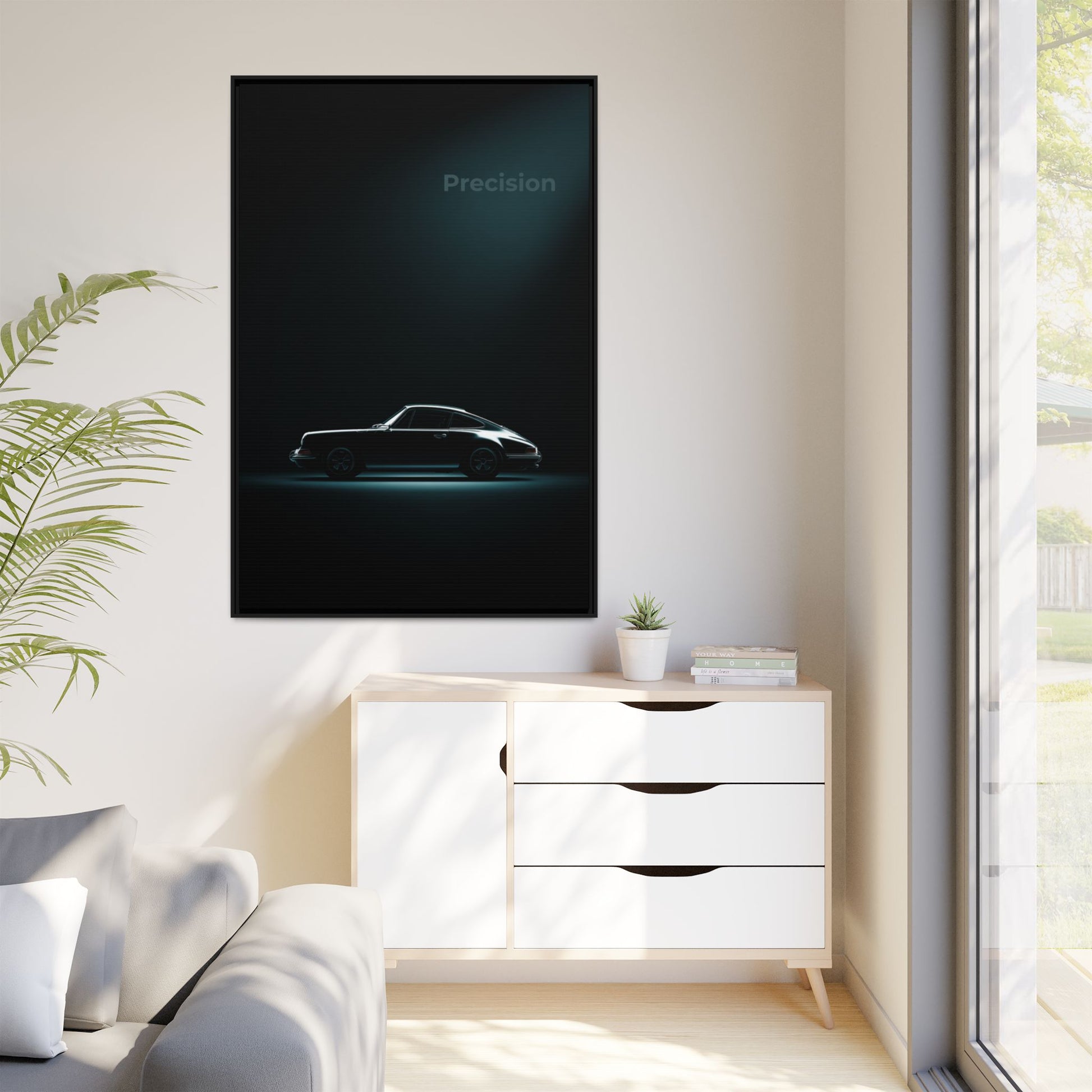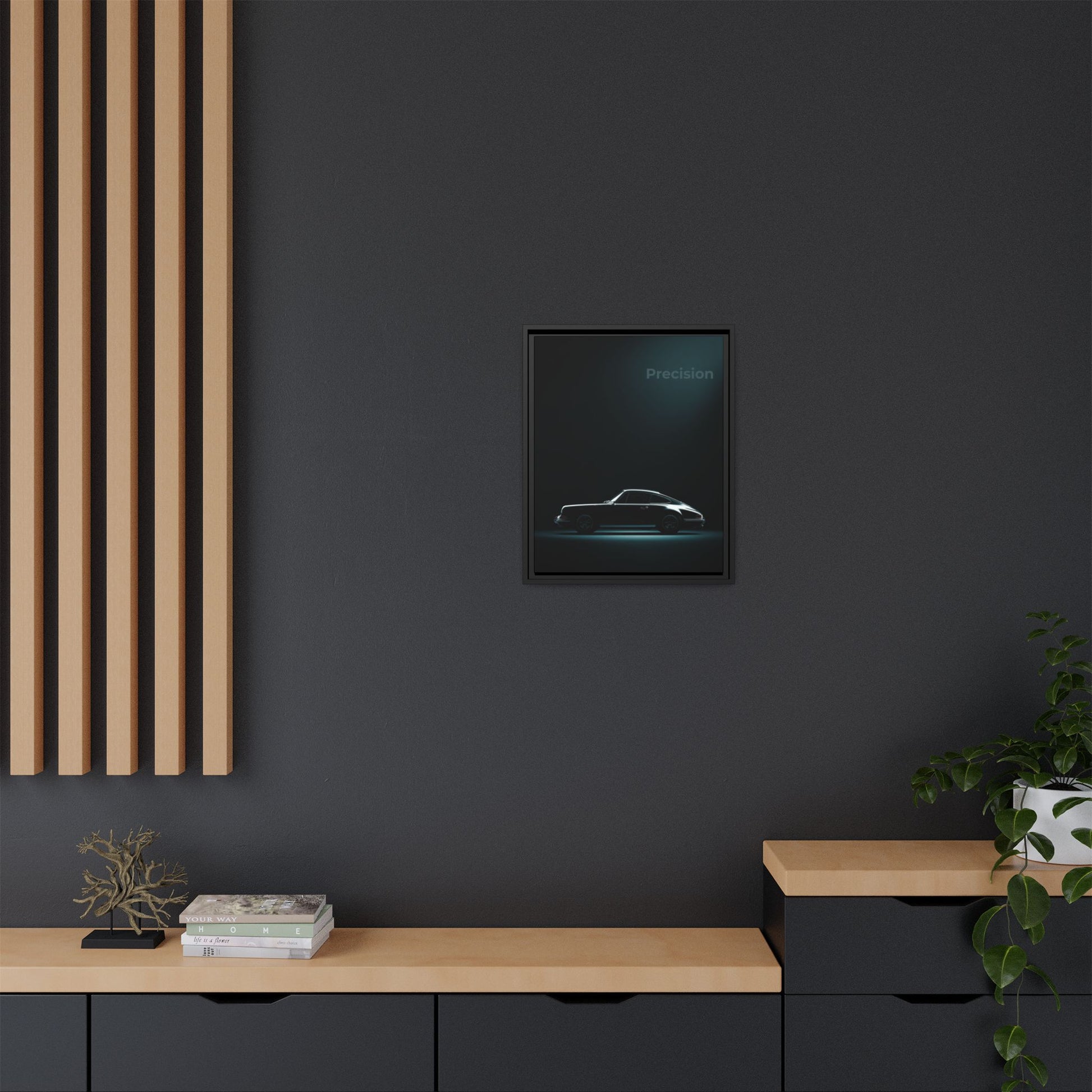 A cinematic matte canvas featuring the iconic Porsche 911 reduced to its purest, most elegant form. Deep blacks and sculpted rim-light carve out the silhouette with just enough metallic reflection to capture the car’s timeless character. Printed with Greenguard Gold–certified latex inks on a matte cotton-poly canvas, this piece delivers museum-grade depth without glare.